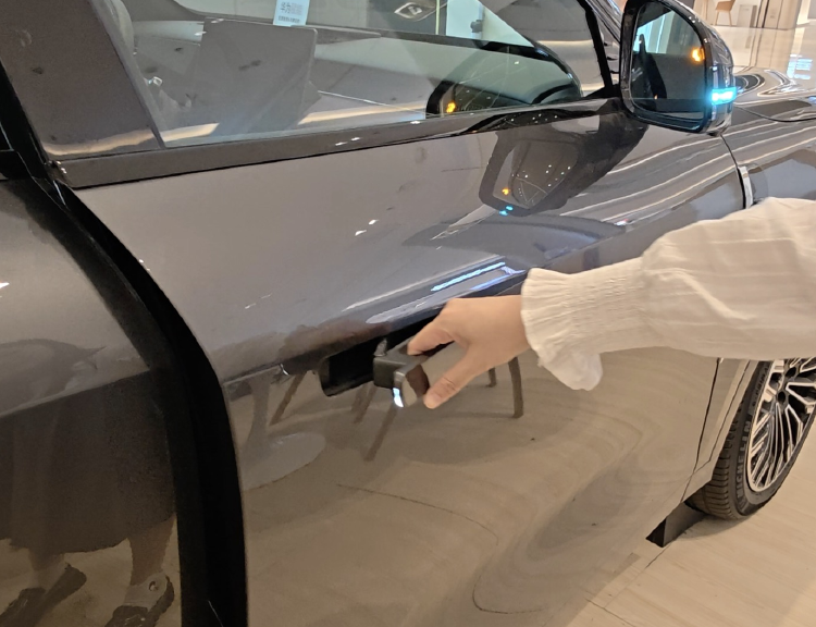 理想i6、岚图FREE+、智界R7,均采用全隐藏平推式门把手。当车辆感应到钥匙时,门把手会自动平推出来。